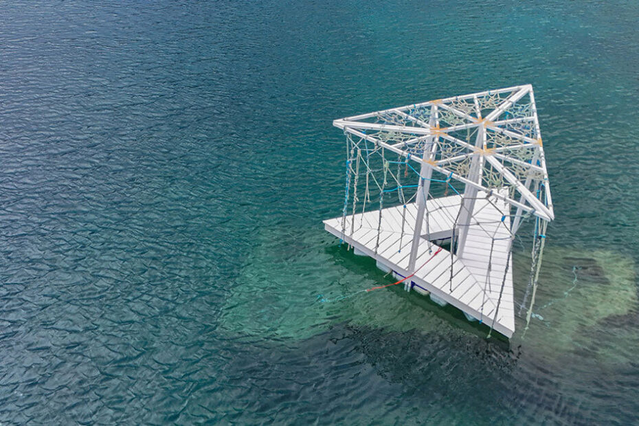 triangular wooden pavilion floats on reused plastic gallons along croatia’s coasts12/06/2025Architecture