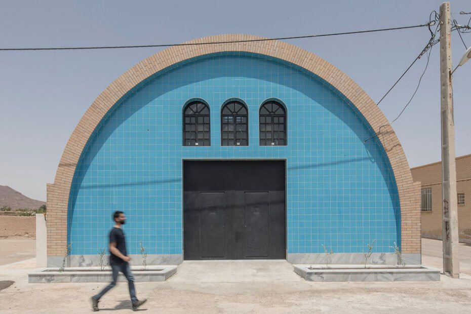 brick and turquoise tiles clad vaulted aghajoon communal kitchen in iran